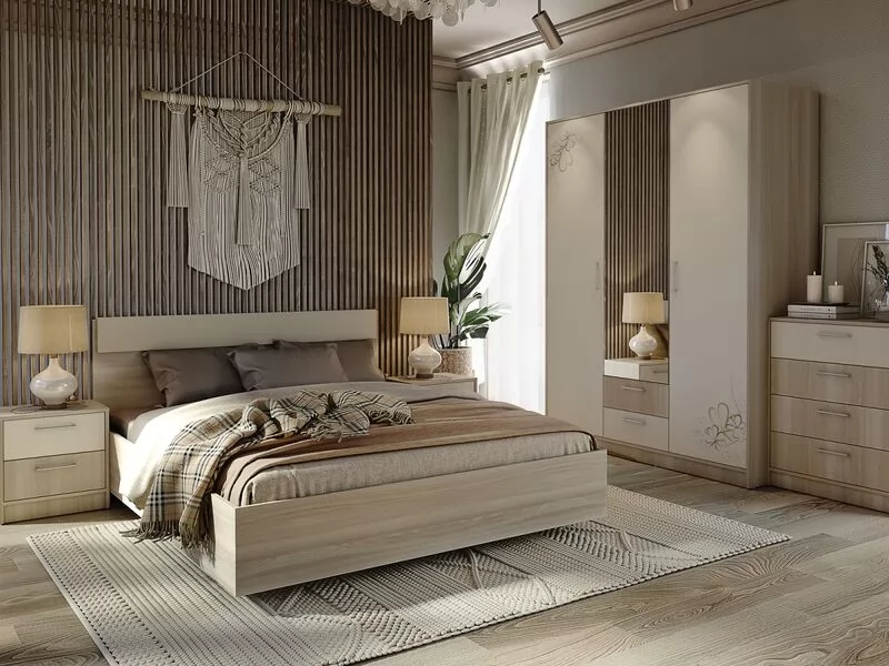 Корпус спальни изготовлен из 16 мм ламинированной древесностружечной плиты