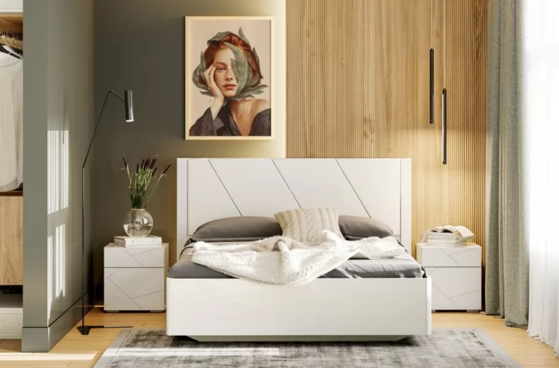 Характерной чертой дизайна коллекции «SUMMIT» является асимметрия из прямых линий. Сочетание фактуры колотого камня с ярко выраженной текстурой дерева. Такая мебель универсальна и подойдет интерьерам в стилях эко, скандинавский, минимализм или лофт, в его более легком варианте.  Спальня будет гармонировать с темными оттенками пастельных тонов, например, коричневым или серым. Если же добавить контраста — нужно выбирать для декора приглушенные холодные оттенки, например, синий или зеленый. Спальня «SUMMIT» понравится как современным жителям мегаполиса, так и тем, кто живет за городом. Мебель будет смотреться особенно гармонично на контрасте с фактурными отделкой стен. Оригинальное основание кровати, с эффектом «парения», станет изюминкой интерьера. Элементы изголовья кровати обтянуты мягким кожзамом. Мягкое изголовье обеспечивает комфортный и безопасный отдых.