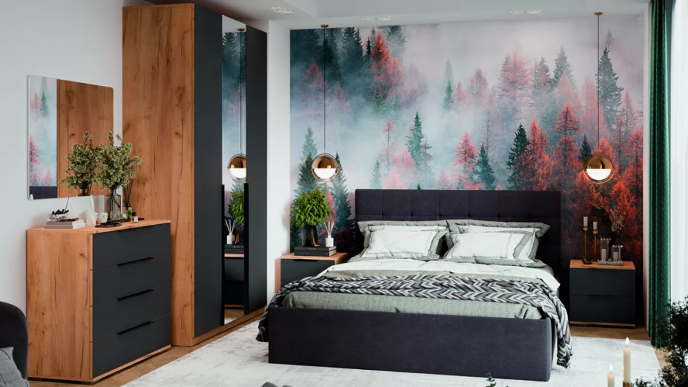 Спальня «Джоли» Дуб Крафт золотой, Графит матовый в Пыть-Яхе