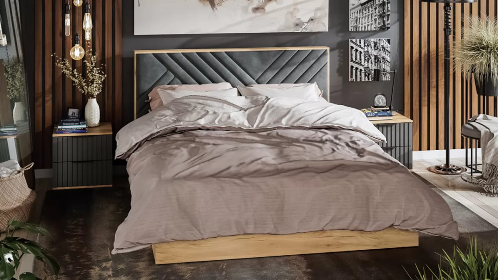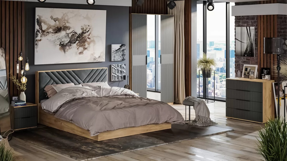 Спальня «Хилтон» Дуб Крафт золотой, Графит матовый в Пыть-Яхе