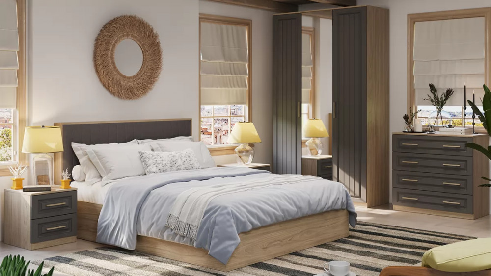 Спальное место - длина: 2 000 Назначение: Мебель для хранения Зеркало: Да Гарантийный срок: 18 месяцев Комната использования: Спальня Материал кромки каркаса: ПВХ Стиль: Прованс Тип: Модульная спальня Расположение: Напольный Тип направляющих ящиков: Шариковые Материал каркаса: ЛДСП Спальное место - ширина: 1 600 Материал ручек: Дерево Производство: Россия Габаритная высота: 2 305 Модель: Сэнди Срок службы: 5 лет Материал фасада: МДФ, пленка ПВХ, зеркало Цвет: Вяз благородный, Серый вулкан Наличие механизма раскладки: Нет Наличие спального места: Нет