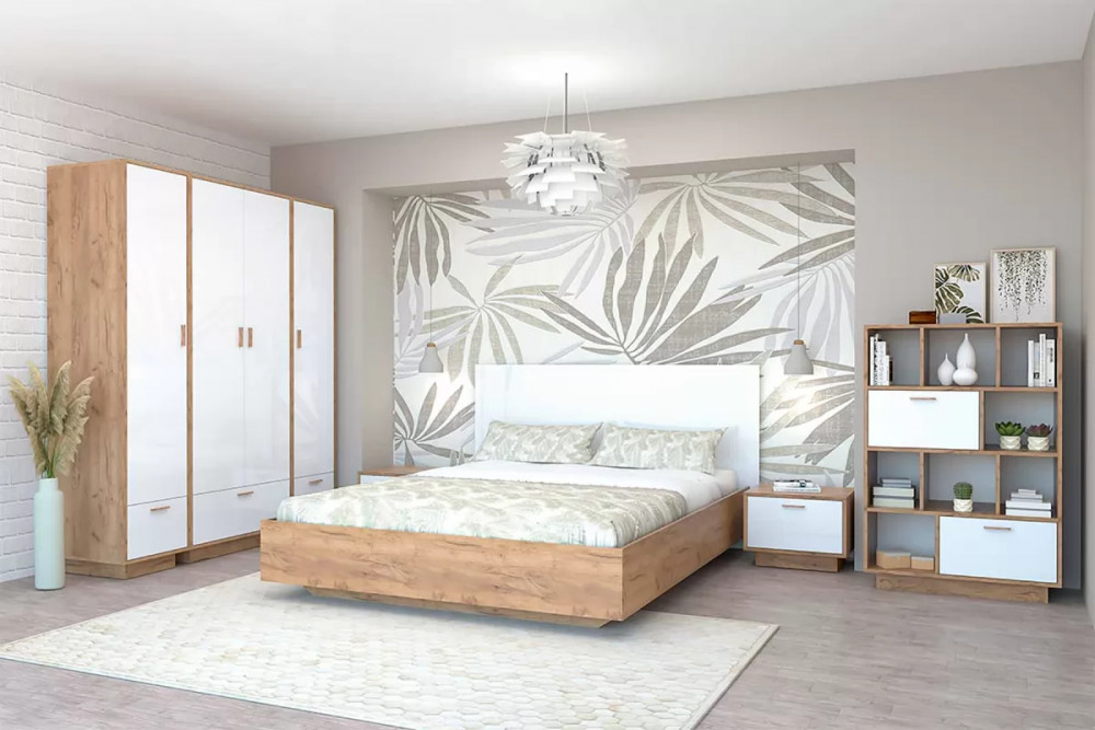Спальня Эго, набор №БГ-1, дуб крафт золотой/белый глянец Диал в Пыть-Яхе