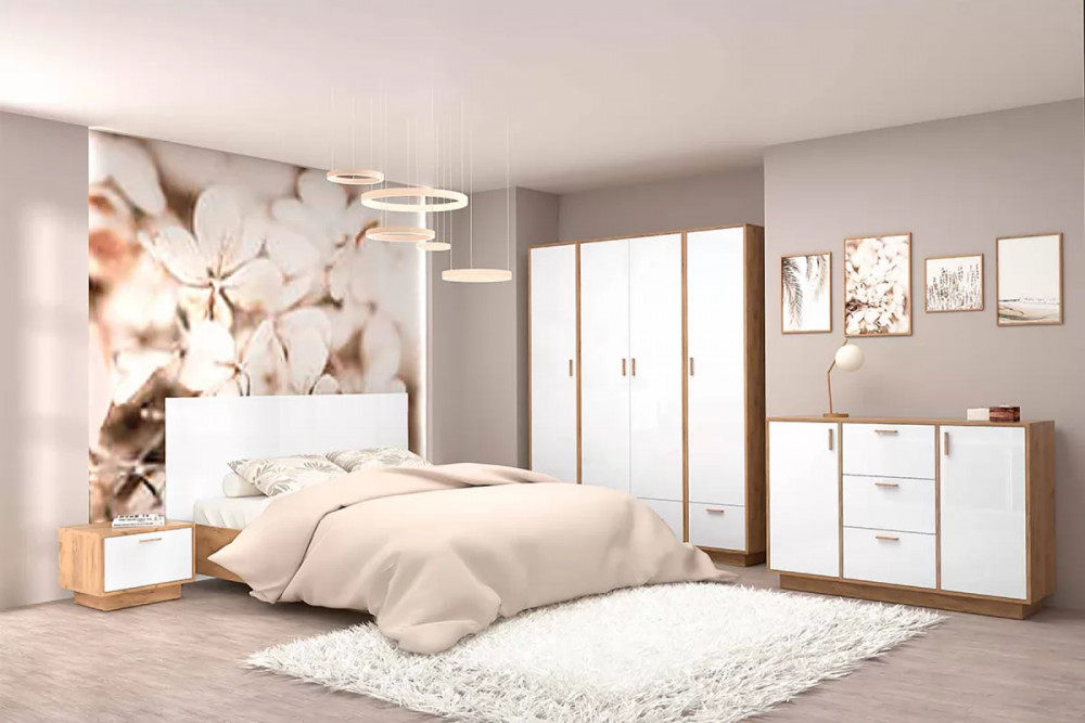 Спальня Эго, набор №БГ-1, дуб крафт золотой/белый глянец Диал