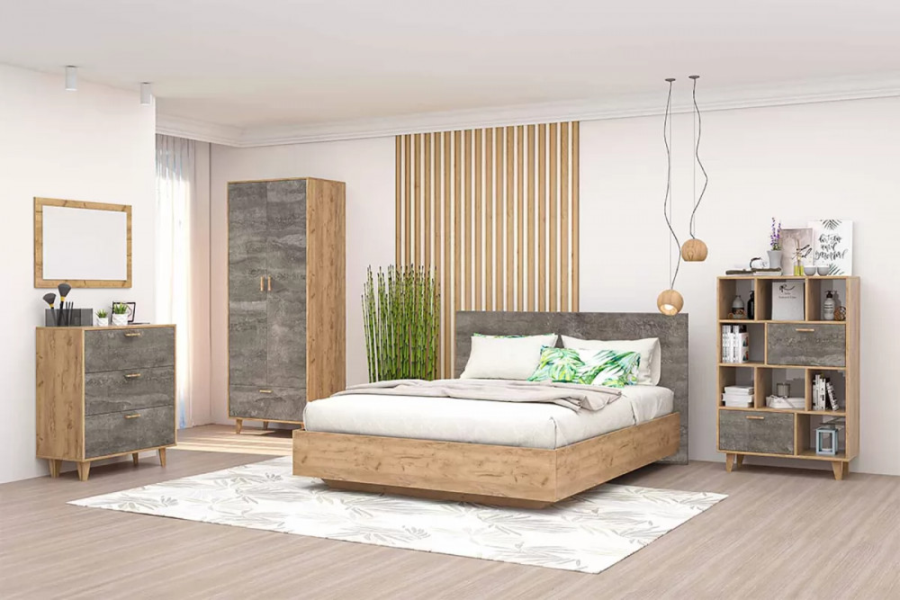 Спальня Эго, набор №КТ-3, дуб крафт золотой/камень темный Диал в Пыть-Яхе