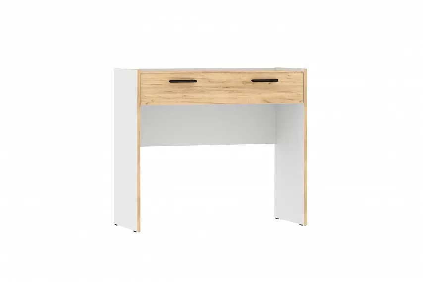 Столик оснащен выдвижным ящиком со встроенной перегородкой, что позволяет легко и удобно расположить всю необходимую косметику и украшения. Ящик открывается плавно и бесшумно за счет шариковых направляющих. Дополните туалетный столик зеркалом из одноименной коллекции, чтобы создать гармоничную атмосферу и подготовиться к выходу их дома!